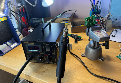 | Soldered in the SOIC op amps. Not too hard to solder, no microscope needed. |